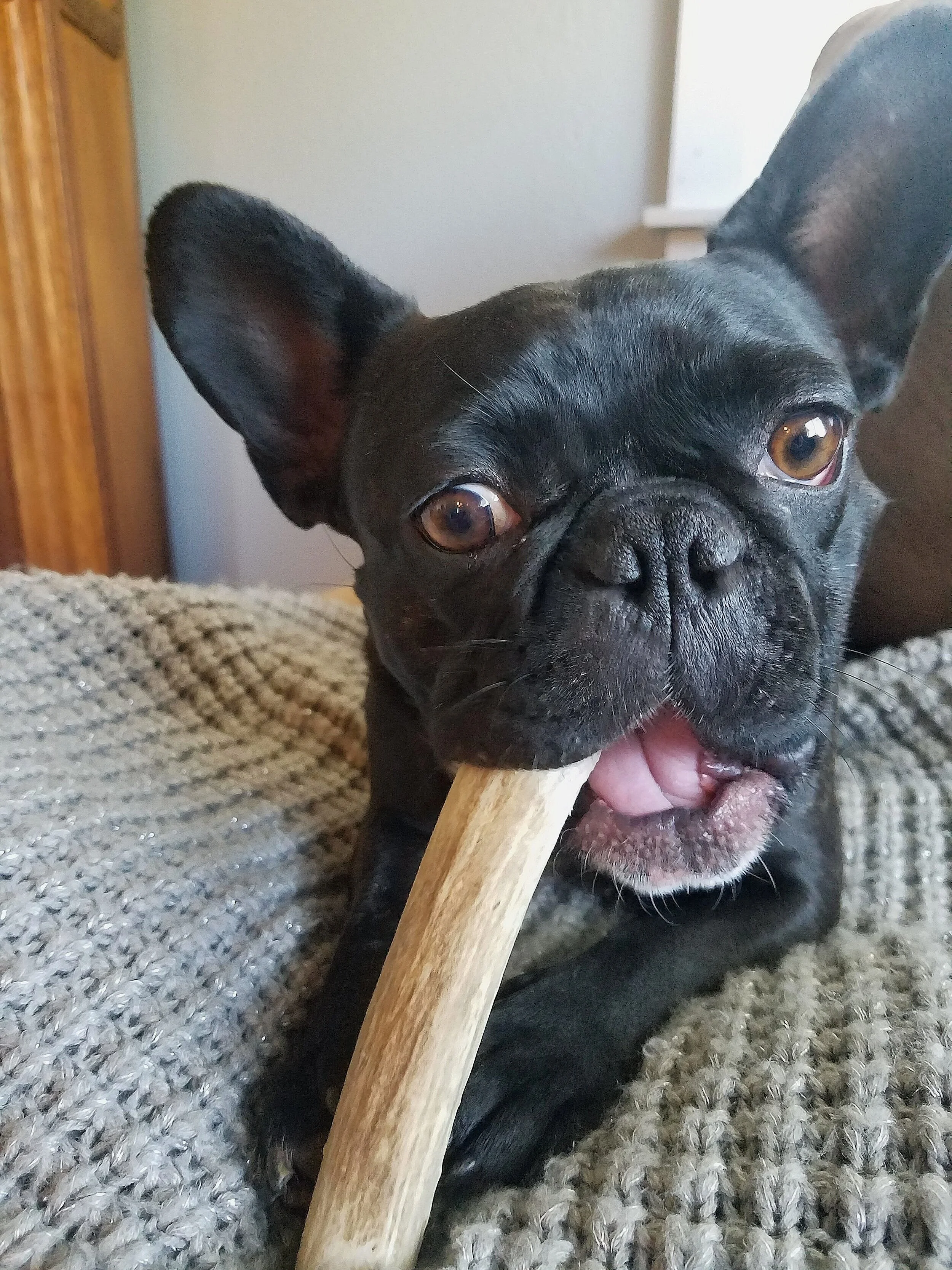 Please keep the following in mind: Antlers are recommended only for adult dogs. Puppies and senior dogs are at risk of damaging their teeth when chewing on hard items like antlers. Always supervise your dog while they chew. Once the antler becomes small enough to pose a choking hazard, dispose of it immediately.